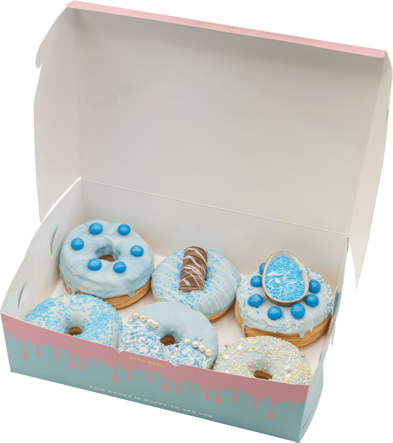 Feiern Sie die Ankunft Ihres kleinen Prinzen mit unserer Baby Shower Box für Jungen! Unsere Box bietet eine Auswahl an handgefertigten Donuts in zarten Blautönen, perfekt für die Feier dieses besonderen Moments. Verbreiten Sie Freude und Vorfreude auf die kommende Ankunft Ihres Babys mit jedem köstlichen Biss in unsere liebevoll gestalteten Leckereien.