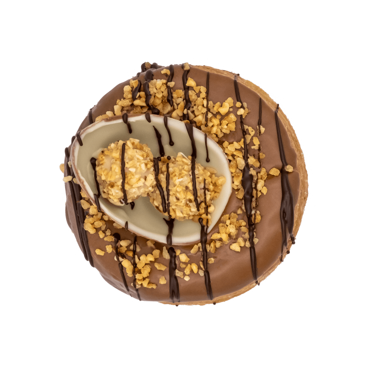 Füllung: Nutella | Glasur: braune Schokolade | Sauce: Dunkle Schokolade | Topping: Krokant, GiOTTO, kinder Überraschungsei